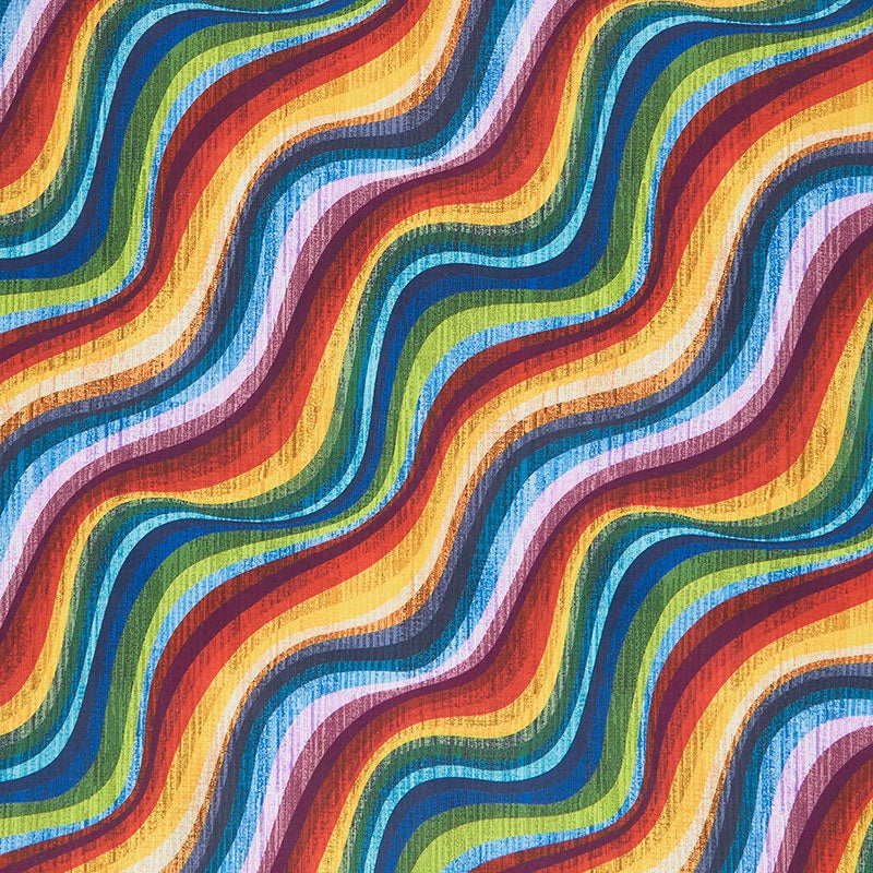 108″ wide backing with multicolored wavy stripes. From Whistler Studios for Windham Fabrics.