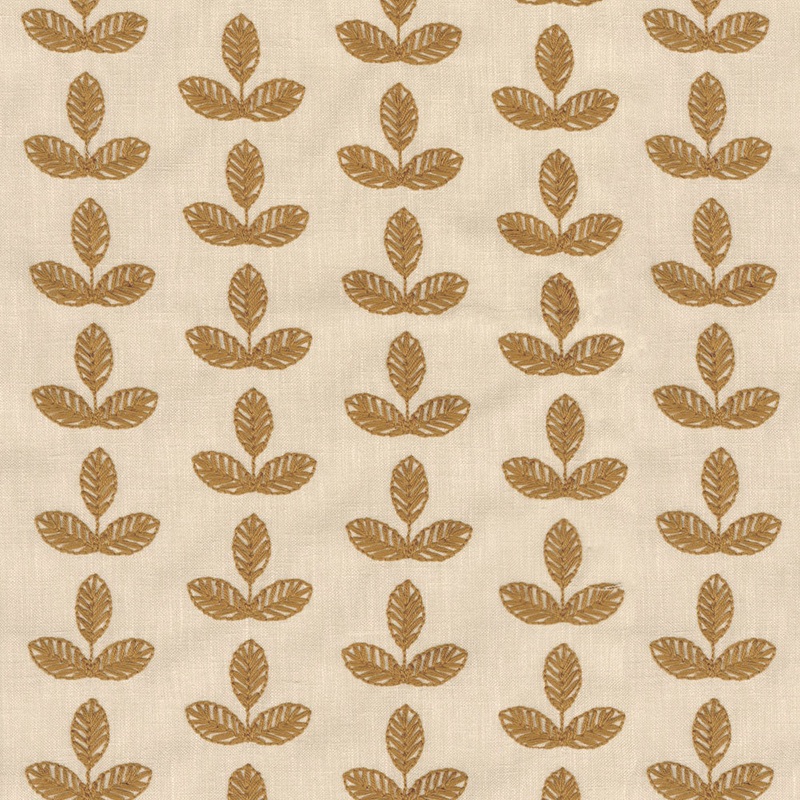 Experience the luxurious elegance of Trillium Topaz Regal Fabric with its unique embroidered leaf design. Elevate any room with this versatile and high-quality fabric, perfect for adding a touch of sophistication and style to your home. Bring the beauty of nature indoors with Trillium Topaz Regal Fabric.