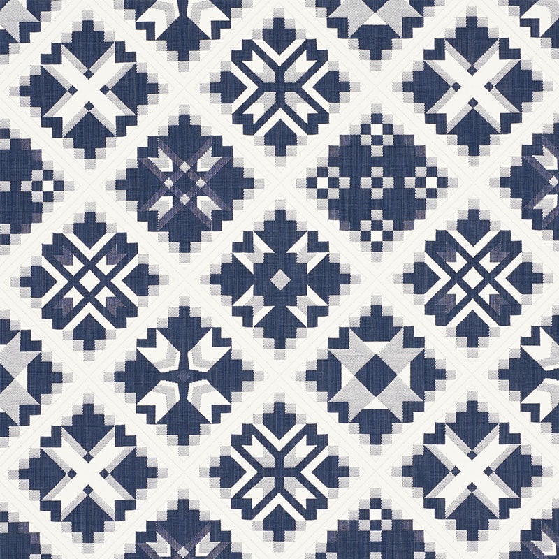 With all the charm of a traditional quilt, Tristan Patchwork is a jacquard weave with wonderful character and dimension. Tristan Patchwork fabric in indigo color by Schumacher is a popular fabric in the New Americana collection. Schumacher Pattern Number 7