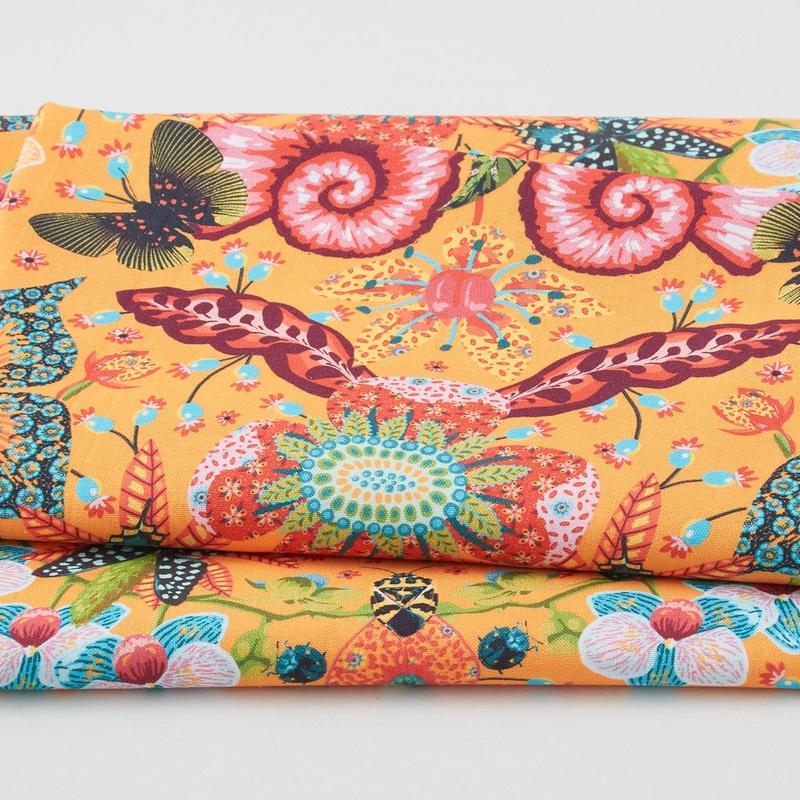 A 2-yard cut of multicolored insects on a yellow background. The Tropicalism collection by Odile Bailloeul for FreeSpirit Fabrics will take you to the islands with its saturated colors and nature-inspired prints. You’ll love sewing with these bountiful fabrics!
