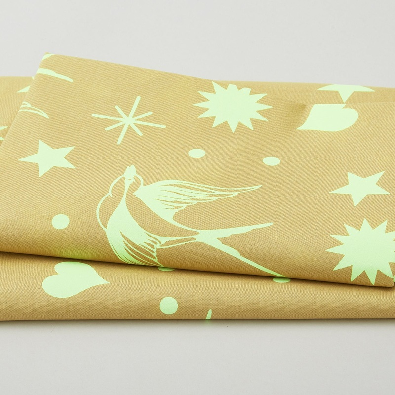 A 2 yard cut of yellow stars, birds, and dots on a yellow background. Show your true colors with this vibrant collection! True Colors by Tula Pink for Free Spirit Fabrics is a dazzling collection of basic and bold in captivating neon colors. You’ll see stripes, polka dots, swallows, stars, and more in this totally Tula collection!
