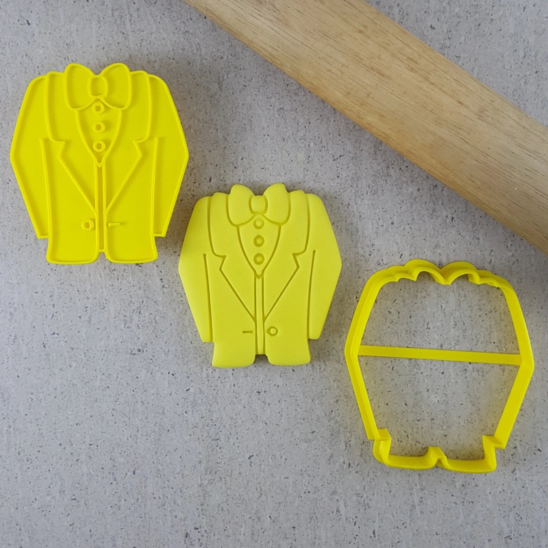 Celebrate your engagement, wedding or any formal event with a batch of cookies using this Tuxedo Cutter and Embosser SetTuxedocutter measures 80 x 70mm.