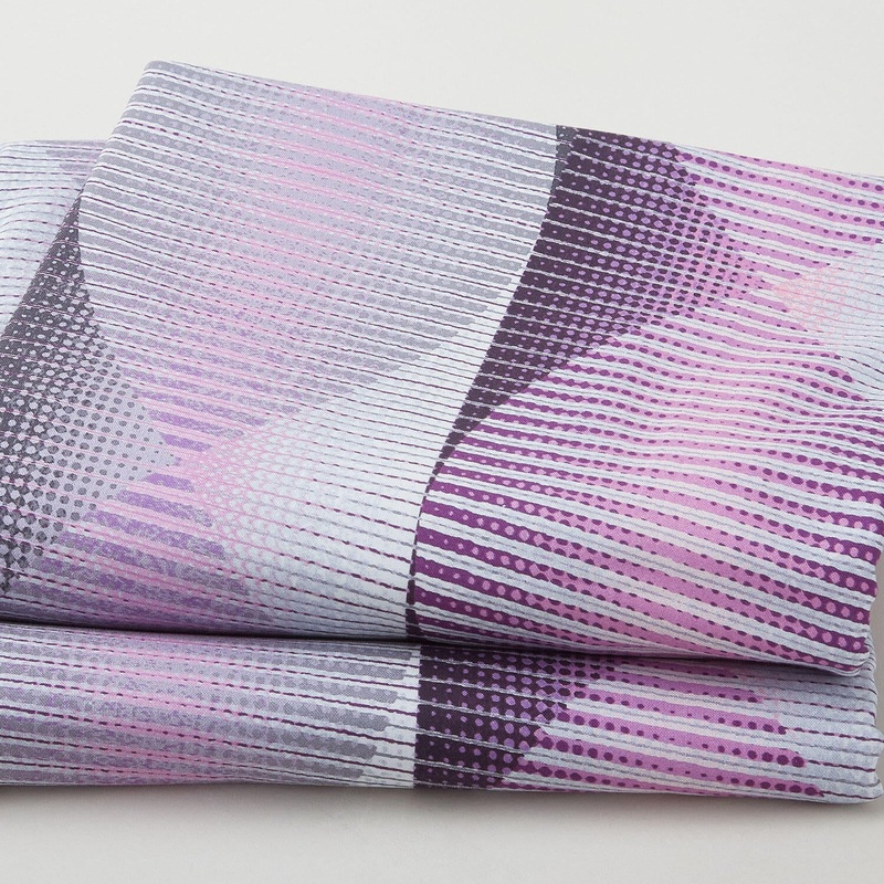 A 3-yard cut of 108" wide backing with stripes of twisting ribbon in shades of purple. Wrap up your quilt with ribbons! These pointed oval shapes with the appearance of twisting ribbons will give the back of your quilt motion and energy! From the Twisted R