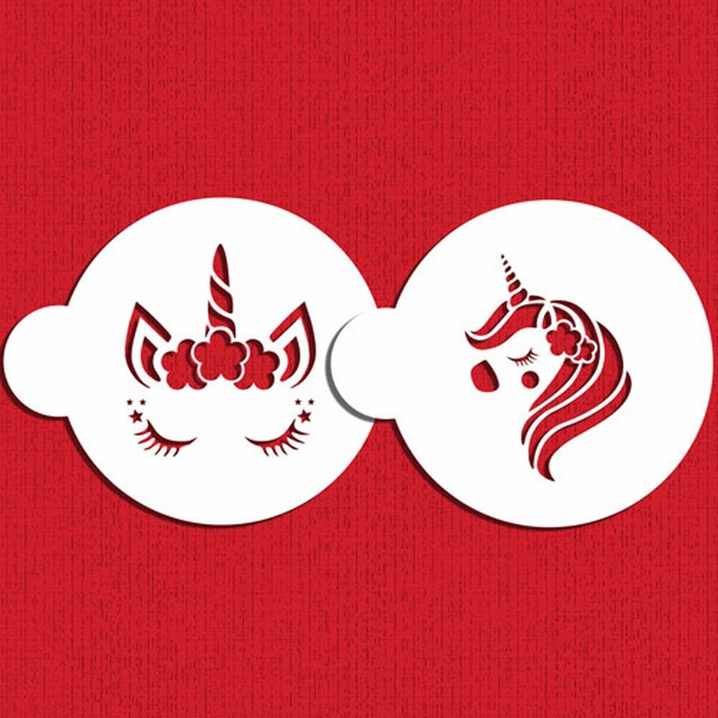 This unicorn cookie stencil set includes two designs that both fit a 3" round cookie.Designs are approximately 2.5" in diameter. Designs are cut out of 10 mil food grade plastic.