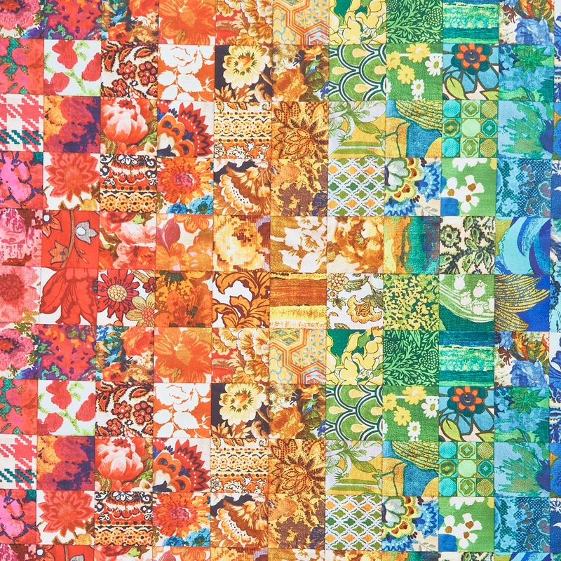 Colorful squares in a patchwork quilt design. Step into the wayback machine with Vintage Soul! This collection of groovy prints is a throwback to the 1960s and 70s, with bright colors, big flowers, and vintage crochet. Cathe Holden designed this fun collec