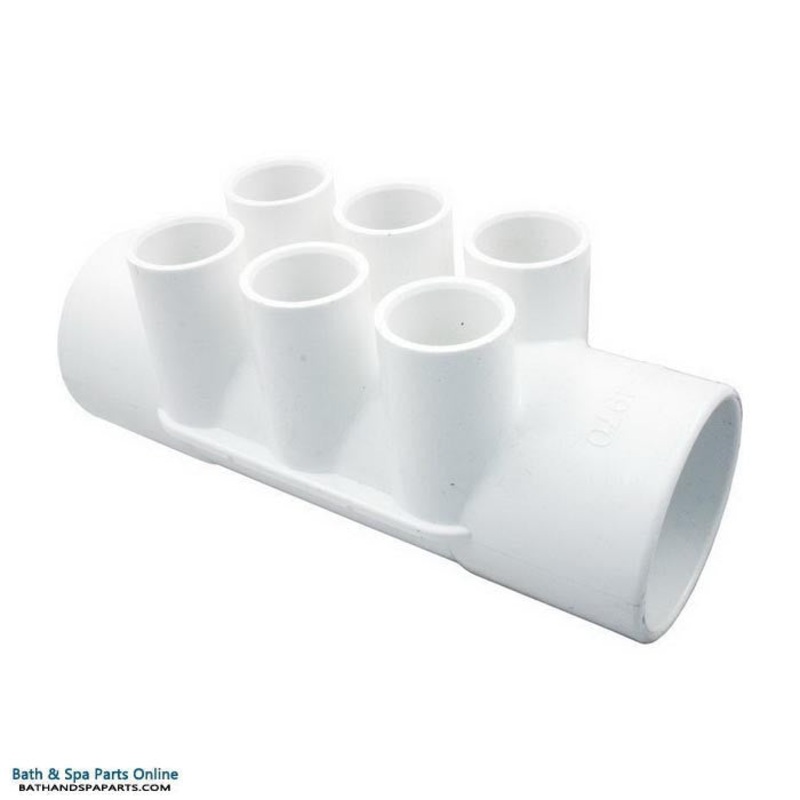 Waterway 6-Port Water Manifold [2" S x 2" Slip x (6)3/4" Slip] (672-4970)Barb/Port Size3/4"Number of Ports6Manifold Fitting TypeFlow-ThruManifold Plumbing Size "A"2"Manifold Plumbing Type "A"Slip (s)Manifold Plumbing Size "B"2"Manifold Plumbing Type "B"Sli