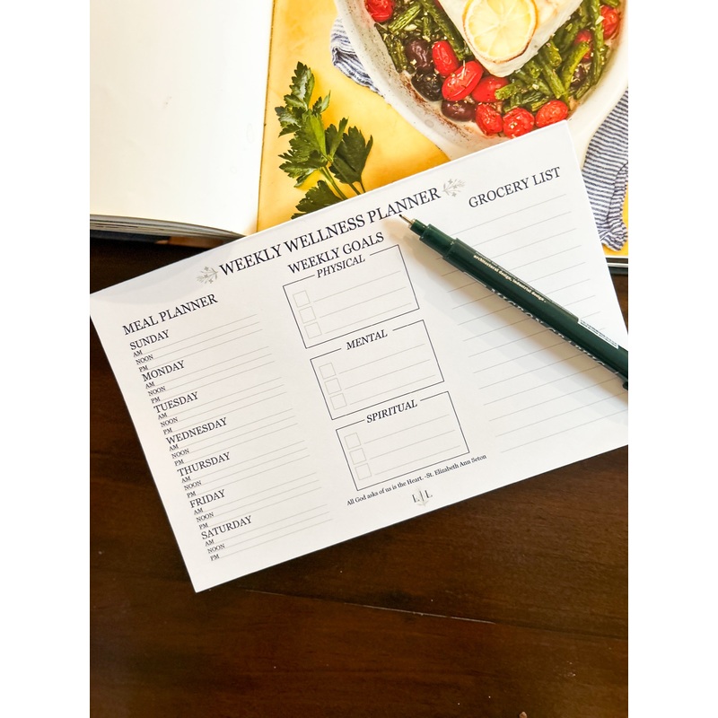 Stay organized and balanced with our Weekly Wellness Calendar! Compact at 5.5" x 8.5", it features a magnetic back for easy fridge display, a meal planner, weekly goals section, and a grocery list. Simplify your week and prioritize wellness in one sleek to