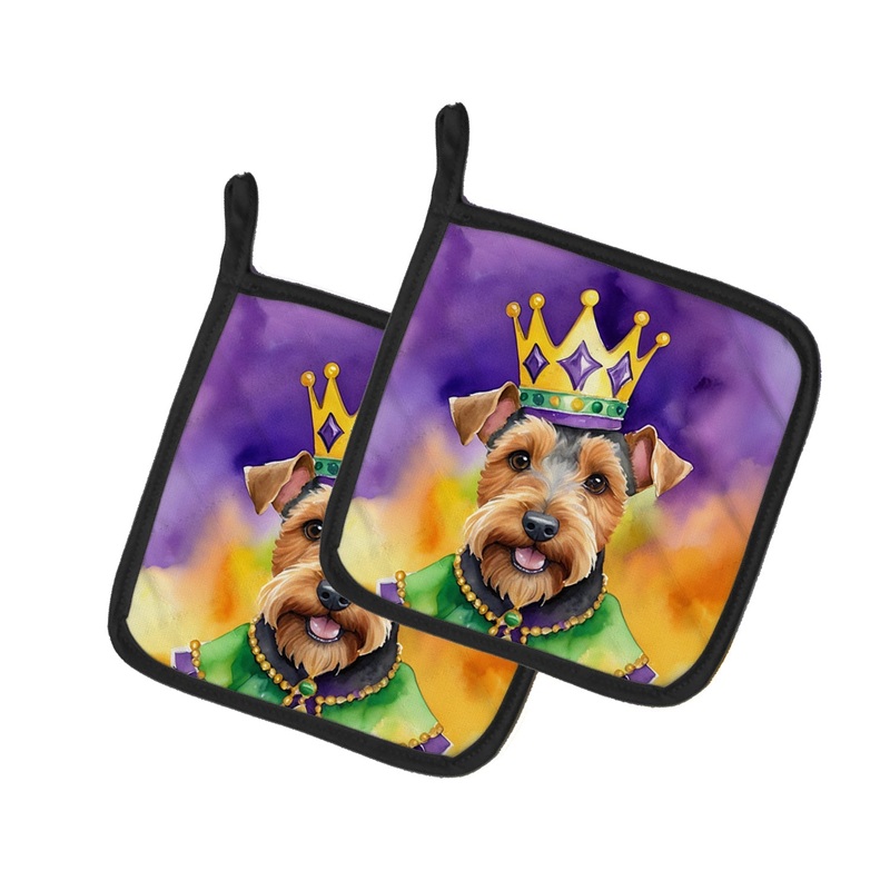 Welsh Terrier King of Mardi Gras Pot Holders – Set of 2 Decorative Kitchen Helpers | Made in the USA