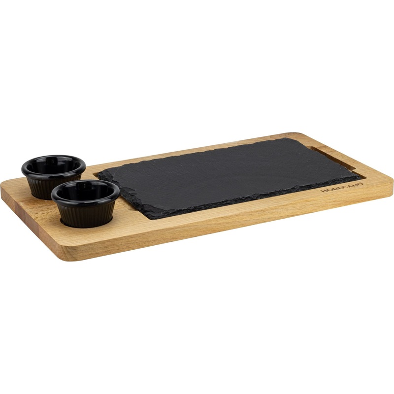 Wooden board 44x22cm with slate and 2 sauce ramekins