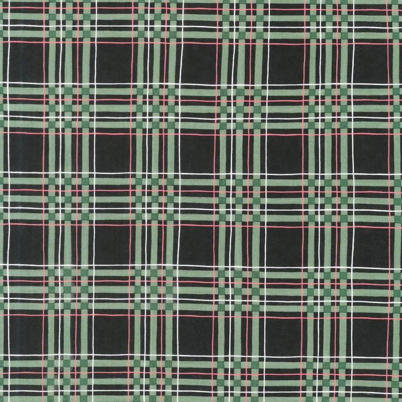 Black and green plaid with red lines. Youll be sewin in a winter wonderland with Woodland Winter from Moda! Designer Deb Strain combined forest creatures, evergreen trees, snow and rustic plaids to create this woodsy collection. Perfect for cabin dcor!