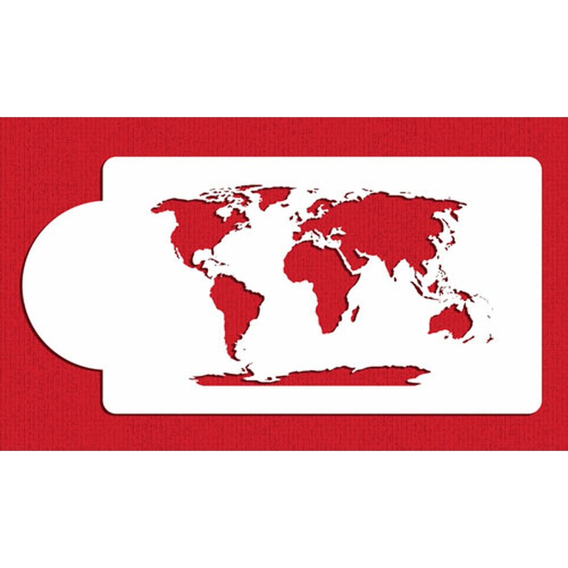 All around the world withDesigner Stencils realistic world map stencil! Size is 4.7" H x 8" W and precision cut from 10 mil food-grade plastic for repeated use.