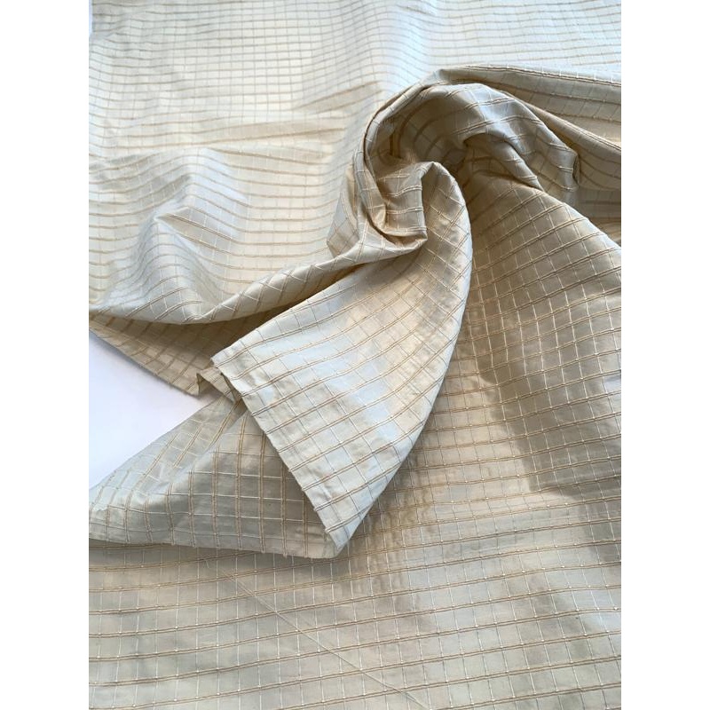 Woven Textured Windowpane Silk Taffeta – Cream / Beige Fabric by the Yard